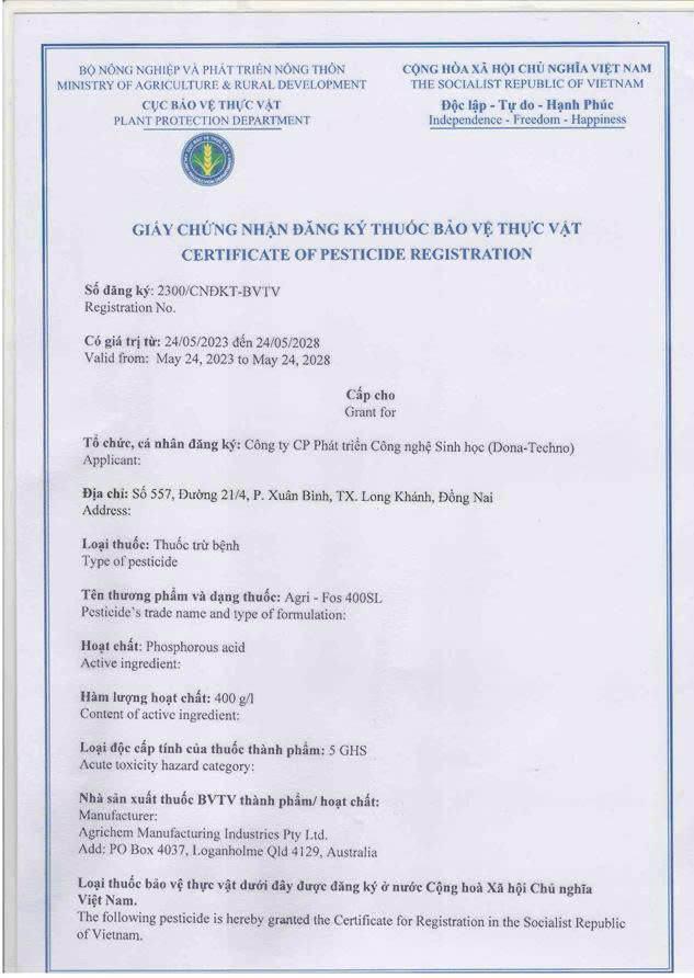 {"id":703371,"name":"Giấy chứng nhận đăng ký thuốc BVTV","desc":"<p>Cục Bảo vệ thực vật - Bộ nông nghiệp và phát triển nông thôn<\/p>\n","content":"<p><img alt=\"\" src=\"\/datafiles\/70885\/upload\/files\/z6882122775915_eefa74d0e76ce426256747cdc6cab6b5.jpg\" \/><\/p>\n\n<p><img alt=\"\" src=\"\/datafiles\/70885\/upload\/files\/z6882122795617_9e26dd898e5275e379c7dd38e2fc21f0.jpg\" \/><\/p>\n","image_url":"https:\/\/donatechno.vn\/datafiles\/70885\/upload\/files\/Logo%20Donatechno%20%28trong%20suot%20xung%20quanh%29.png","image_thumb_url":"https:\/\/donatechno.vn\/datafiles\/70885\/upload\/thumb_files\/Logo%20Donatechno%20%28trong%20suot%20xung%20quanh%29.png","tags":["giấy chứng nhận"],"count_view":68,"seo_name":"giay-chung-nhan-dang-ky-thuoc","date_update":1748593086,"date_created_format":1748593086,"meta_title":"","meta_desc":"","meta_keyword":"","qr_code":"https:\/\/donatechno.vn\/giay-chung-nhan-dang-ky-thuoc","title_page":"Tin tức - Tài liệu","relate_object_id":703371,"company_logo":"https:\/\/donatechno.vn\/datafiles\/70885\/upload\/files\/Logo%20Donatechno%20%28trong%20suot%20xung%20quanh%29.png","company_name":"CÔNG TY CỔ PHẦN PHÁT TRIỂN CÔNG NGHỆ SINH HỌC DONA - TECHNO","company_email":"donatechno2@gmail.com","company_phone":"0326434434","company_address":"Số 557, Đường 21\/4, Phường Long Khánh, Tỉnh Đồng Nai","company_fax":"","date_now":1776608199,"company_tags":["sầu riêng","sầu riêng dona","Dona","thuốc Agrifos","Agrifos 400SL"],"search_keyword":null,"facebook_comment":"https:\/\/donatechno.vn\/giay-chung-nhan-dang-ky-thuoc","breadscrumb":[{"url":"https:\/\/donatechno.vn","name":"Trang chủ","icon":"","active":false},{"url":"https:\/\/donatechno.vn\/tin-tuc-va-tai-lieu","name":"Tin tức - Tài liệu","icon":"","active":false},{"url":"https:\/\/donatechno.vn\/tai-lieu-giay-chung-nhan","name":"Tài liệu","icon":"","active":true}],"list_products_tmp":[],"list_section":[{"id":612825,"name":"SECTION-161901","seo_name":"#w30s-section-612825","url":"#w30s-section-612825"},{"id":612828,"name":"SECTION-162285","seo_name":"#w30s-section-612828","url":"#w30s-section-612828"},{"id":612829,"name":"SECTION-105183","seo_name":"#w30s-section-612829","url":"#w30s-section-612829"},{"id":687013,"name":"SECTION-162341","seo_name":"#w30s-section-687013","url":"#w30s-section-687013"},{"id":612850,"name":"SECTION-162286","seo_name":"#w30s-section-612850","url":"#w30s-section-612850"},{"id":680951,"name":"SECTION-161903","seo_name":"#w30s-section-680951","url":"#w30s-section-680951"},{"id":680952,"name":"SECTION-608142","seo_name":"#w30s-section-680952","url":"#w30s-section-680952"}],"type_page":7,"id_page":422636,"widget_15734988":{"content_data":{"content":"Giỏ hàng"}},"widget_15734961":{"content_data":{"content":"Yêu thích"}},"widget_15734997":{"content_data":[{"id":93406,"title":"Viet Nam","code":"vn","is_expires":false,"is_active":1}]},"widget_15734967":{"content_data":{"content":"So sánh"}},"widget_15734970":{"content_data":{"content":"Yêu thích"}},"widget_15734957":{"content_data":[{"id":93406,"title":"Viet Nam","code":"vn","is_expires":false,"is_active":1}]},"widget_15734962":{"content_data":[]},"widget_15734964":{"content_data":{"content":""}},"widget_15734968":{"content_data":{"content":"So sánh"}},"widget_15734971":{"content_data":{"content":"Yêu thích"}},"widget_15734995":{"content_data":{"content":"Tài khoản"}},"widget_15734965":{"content_data":{"content":"Tìm kiếm"}},"widget_15734996":{"content_data":{"content":"Tài khoản"}},"widget_15734956":{"content_data":{"content":"Đơn hàng"}},"widget_15734991":{"content_data":{"content":"Đơn hàng"}},"widget_15734992":{"content_data":{"content":"Đơn hàng"}},"widget_15734989":{"content_data":{"content":"Giỏ hàng"}},"widget_15734978":{"content_data":{"price_final":""}},"widget_15734979":{"content_data":{"content":""}},"widget_15734981":{"content_data":{"content":"Tổng tiền:"}},"widget_15734984":{"content_data":{"content":"Giỏ hàng"}},"widget_15734985":{"content_data":{"content":"Thanh toán"}},"widget_15735466":{"content_data":{"content":"Button"}},"widget_15735471":{"content_data":{"content":"Yêu thích"}},"widget_15735477":{"content_data":{"content":"So sánh"}},"widget_15735480":{"content_data":{"content":"Yêu thích"}},"widget_15735472":{"content_data":[]},"widget_15735474":{"content_data":{"content":""}},"widget_15735478":{"content_data":{"content":"So sánh"}},"widget_15735481":{"content_data":{"content":"Yêu thích"}},"widget_15735505":{"content_data":{"content":"Tài khoản"}},"widget_15735507":{"content_data":[{"id":93406,"title":"Viet Nam","code":"vn","is_expires":false,"is_active":1}]},"widget_15735475":{"content_data":{"content":"Tìm kiếm"}},"widget_15735506":{"content_data":{"content":"Tài khoản"}},"widget_15735501":{"content_data":{"content":"Đơn hàng"}},"widget_15735502":{"content_data":{"content":"Đơn hàng"}},"widget_15735488":{"content_data":{"price_final":""}},"widget_15735489":{"content_data":{"content":""}},"widget_15735491":{"content_data":{"content":"Tổng tiền:"}},"widget_15735494":{"content_data":{"content":"Giỏ hàng"}},"widget_15735495":{"content_data":{"content":"Thanh toán"}},"widget_15735498":{"content_data":{"content":"Giỏ hàng"}},"widget_15735499":{"content_data":{"content":"Giỏ hàng"}},"widget_14480526":{"content_data":{"content":"danh mục tin tức"}},"widget_14480547":{"content_data":{"content":"BÀI VIẾT mới"}},"widget_14480559":{"content_data":{"content":"Lượt xem:"}},"widget_15687047":{"content_data":{"content":"Xem chi tiết"}},"widget_14480535":{"content_data":{"content":"Yêu thích"}},"widget_14480544":{"content_data":{"content":"Xem nhanh"}},"widget_14480529":{"content_data":{"content":"SẢN PHẨM BÁN CHẠY\n"}},"widget_14480536":{"content_data":{"content":"Giỏ hàng"}},"widget_14480542":{"content_data":{"content":"P.A Việt Nam tiên phong tr